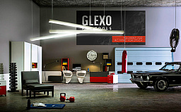 Branded Glexo banner in black color with a net pattern, made on a banner canvas. Fits perfectly into the interior of the repair shop.