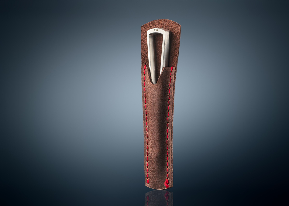 The PDR knockdown Glexo Knockdown 2.6 is an ultra-precise tapper designed for the finest detailing tasks. With an optimized balance and a precision-engineered mirror-polished tip of just 2.6mm, it offers exceptional control for high-accuracy work. The tool is 120 mm / 4.72" in length and comes in a premium natural leather case for safe storage and transport.