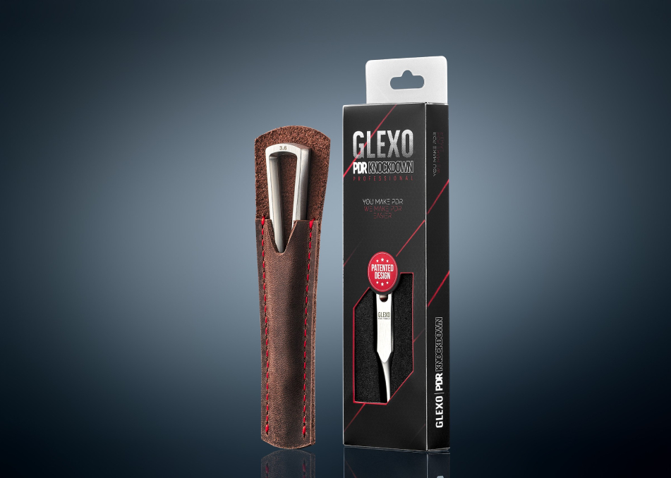 The PDR knockdown Glexo Knockdown 3.6 is a versatile tapper designed for balanced performance across a wide range of PDR tasks. With an optimized center of gravity and a precision mirror-polished tip of 3.6 mm, it provides outstanding control and efficiency for both detailing and general knockdown work. The tool is 120 mm / 4.72" in length and comes in a premium natural leather case for safe storage and transport.